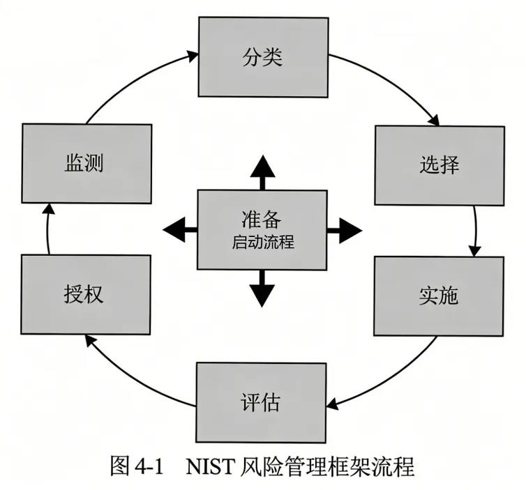 风险管理框架(Risk Management Framework,RMF)可以被定义为允许组织识别和评估风险,将风险降低到(并保持在)可接受水平的结构化流程。从本质上讲,RMF是一种结构化的风险管理方法。4.2.1 NIST 风险管理框架