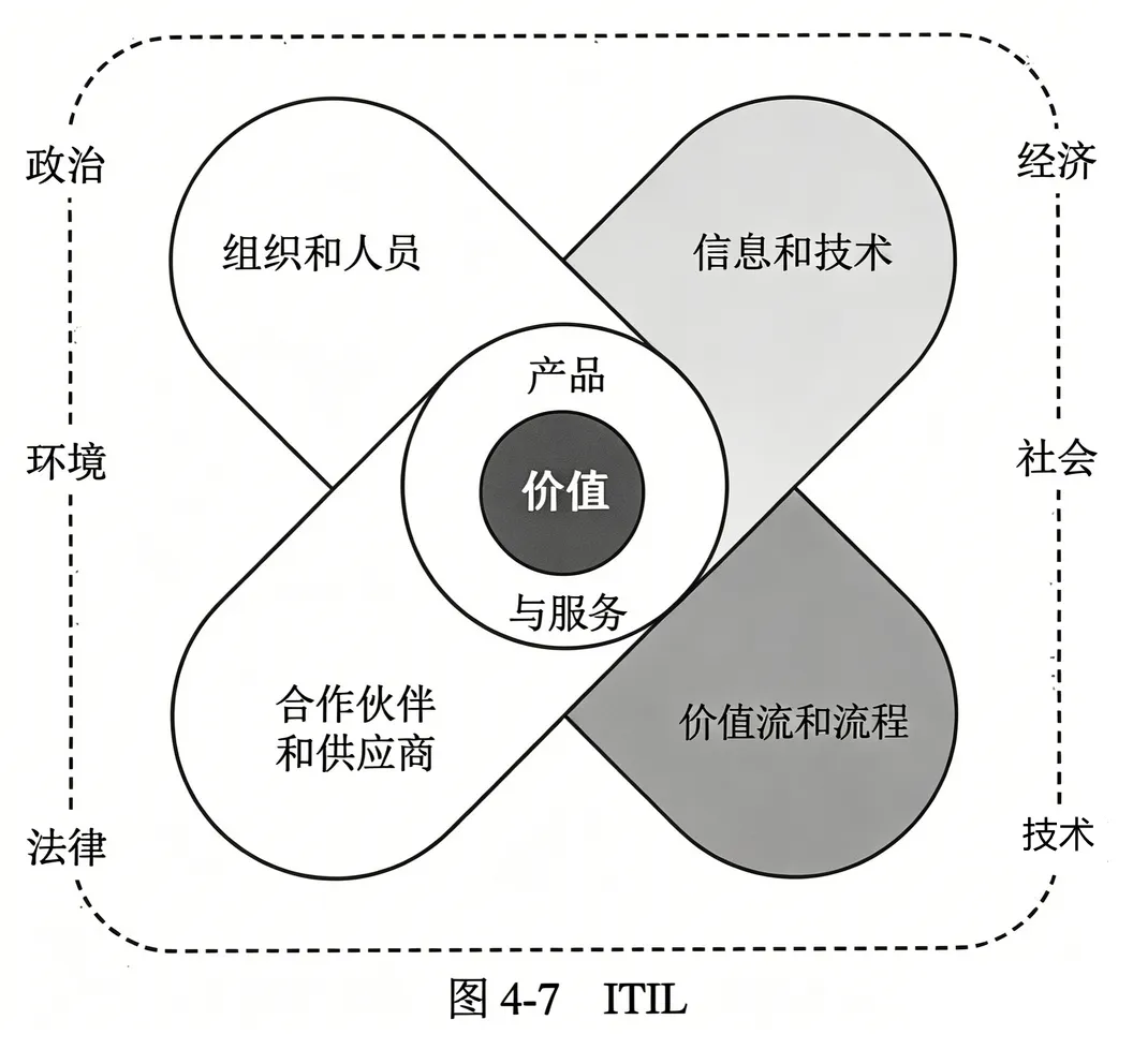 确保部署适当的控制措施后,组织往往还希望以结构化和可控的方式,逐步构造和不断完善组织的业务运营、IT运维以及安全保护的有关流程。可将安全控制措施视作“工具”,而流程则是使用这些工具的方法。组织希望可正确、有效和高效地使用这些安全控制措施和流程。4.5.1 ITIL