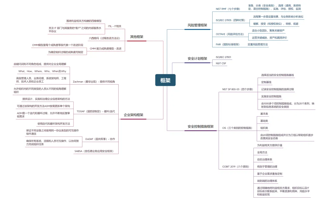 所谓框架(Framework),是指体系、概念或文本的基础结构。因此,信息技术和网络安全框架的目的是为安全专家管理风险、制定企业架构和保护组织内所有资产提供一套结构化的方法论。框架是关于安全专家应如何处理安全管理相关问题的各种共识和最佳实践。4.2 风险框架