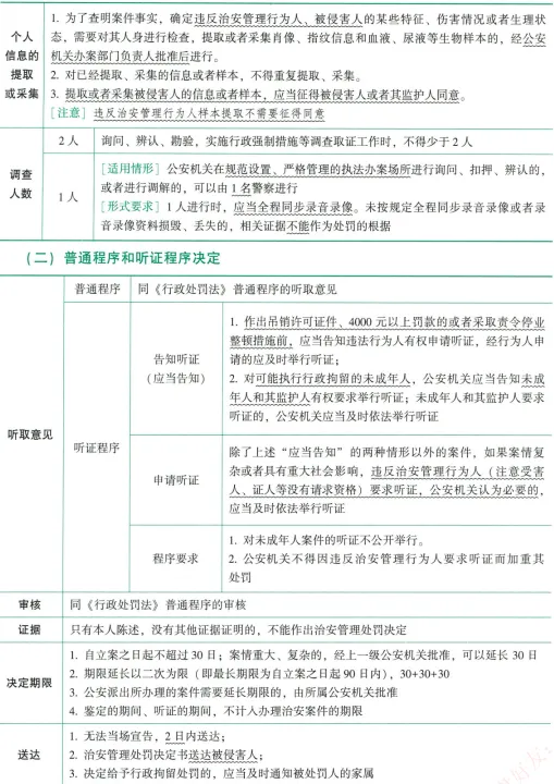 (6)送达:当场宣告并交付;无法当场宣告的,2日内送达。行政拘留应通知家属。有被侵害人的,送达决定书。