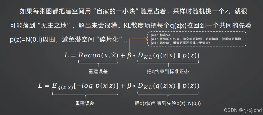 - • β>1:更强的KL约束,潜空间更规则,但重建会更模糊