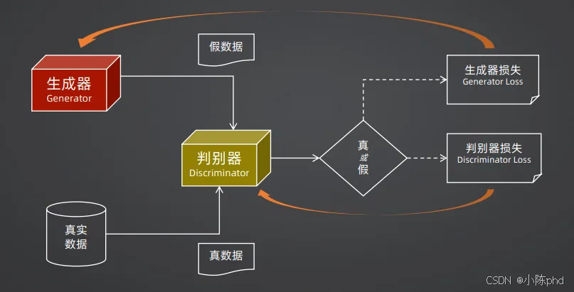 GAN(生成对抗网络)的核心思想是"对抗训练",它由两个神经网络组成:生成器(Generator) 和判别器(Discriminator)。