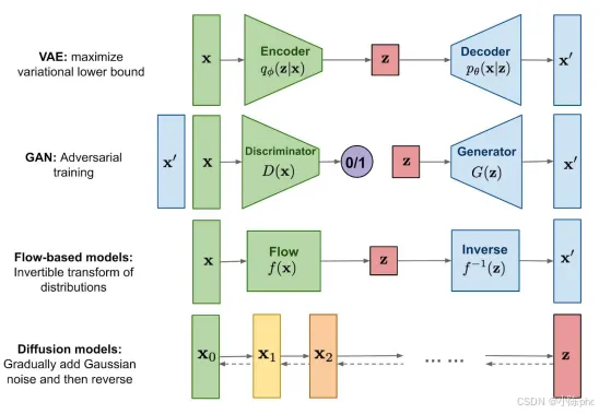 自深度学习兴起以来,生成模型领域涌现出了五大主流技术流派,它们在不同时期各领风骚,共同推动了AI生成技术的进步: