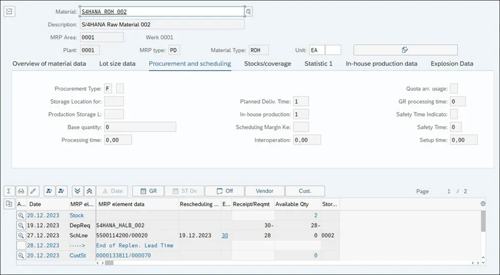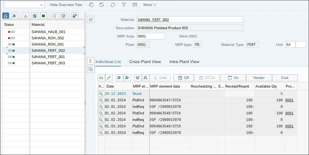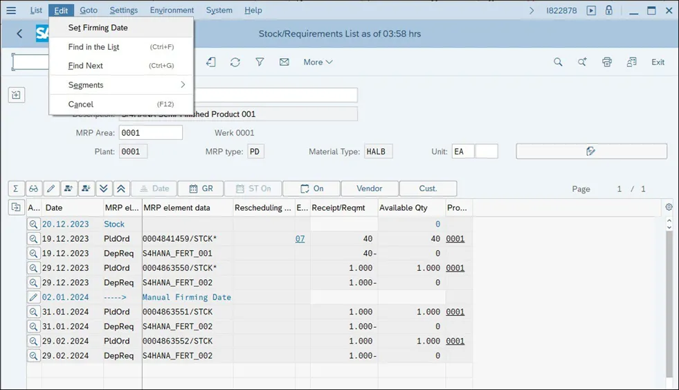 S4 HANA生产模块学习笔记-评估MRP结果(库存/需求列表)2
