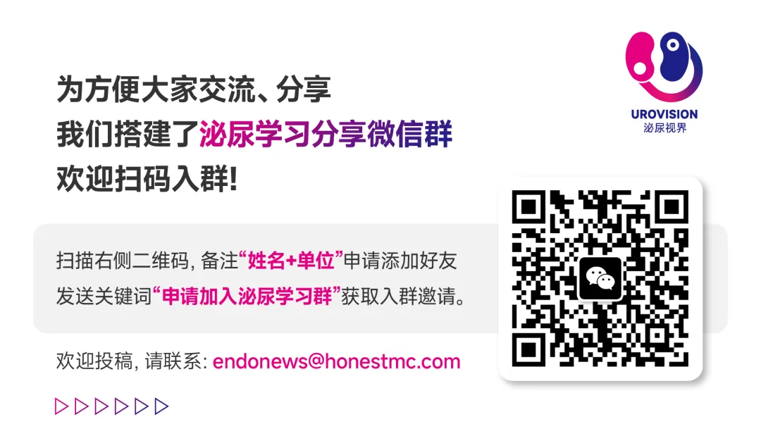 本文仅作知识分享,不可用于其他商业用途,如需引用,请列明出处;本文著作权属于作者本人,如涉及版权,请及时联系我们;本文所提供的信息仅代表作者观点,不代表本平台观点;不能以任何方式取代专业的医疗指导,也不应被视为诊疗建议;泌尿视界作为知识的分享者,只为帮助更多读者了解相关疾病领域的宝贵知识。