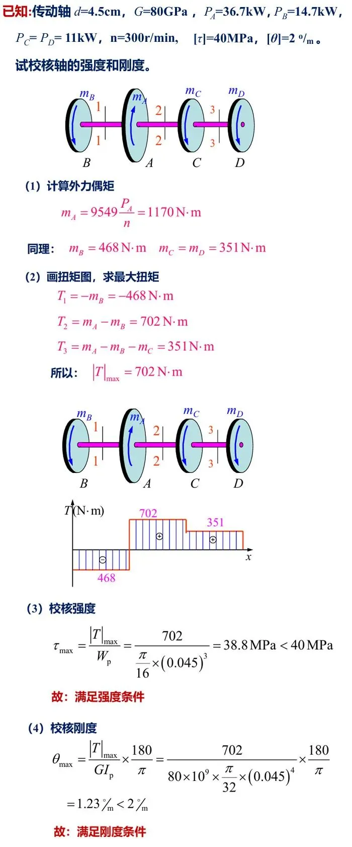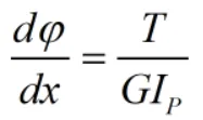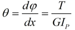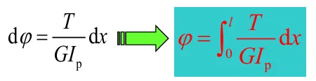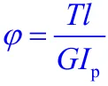上式表明,扭转角φ与扭矩T、轴长l成正比,与乘积GIP成反比。乘积GIP称为圆轴截面扭转刚度。