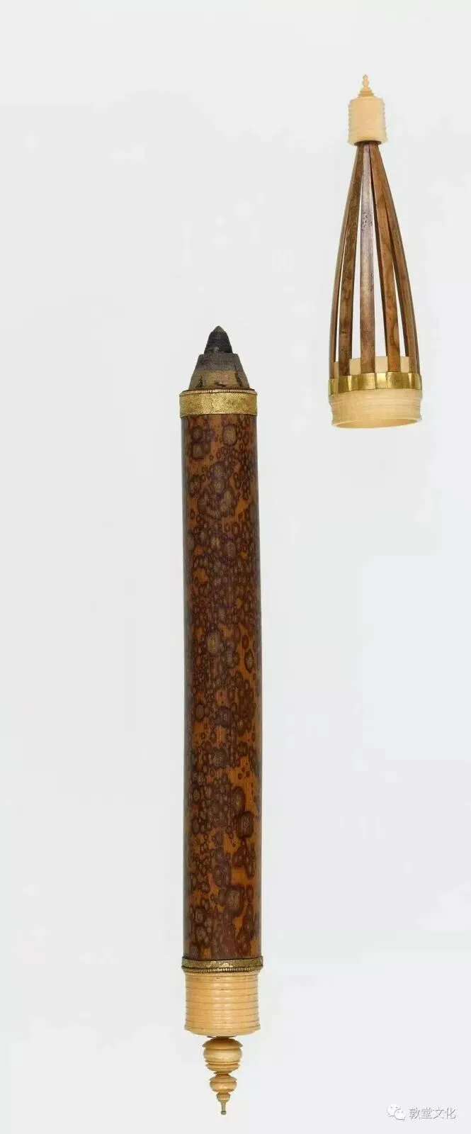 二、唐代 · 正仓院缠纸鸡距笔(传世唐笔标准)日本奈良正仓院藏17支完整唐笔,是全球最完好的唐代缠纸笔实物。