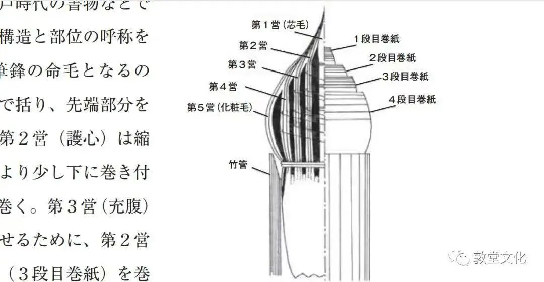 - 特征:竹杆、紫毫、笔根丝绢缠绕(有心缠纸法遗风)