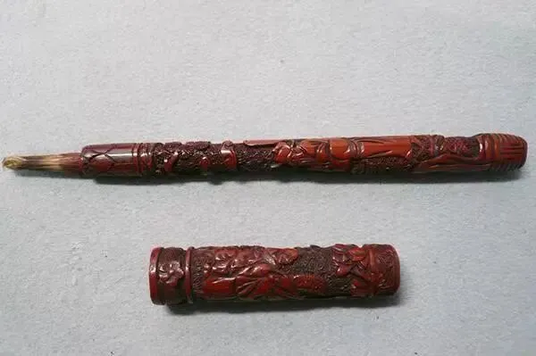 3. 明红雕漆人物管狼毫笔(北京文物局藏)