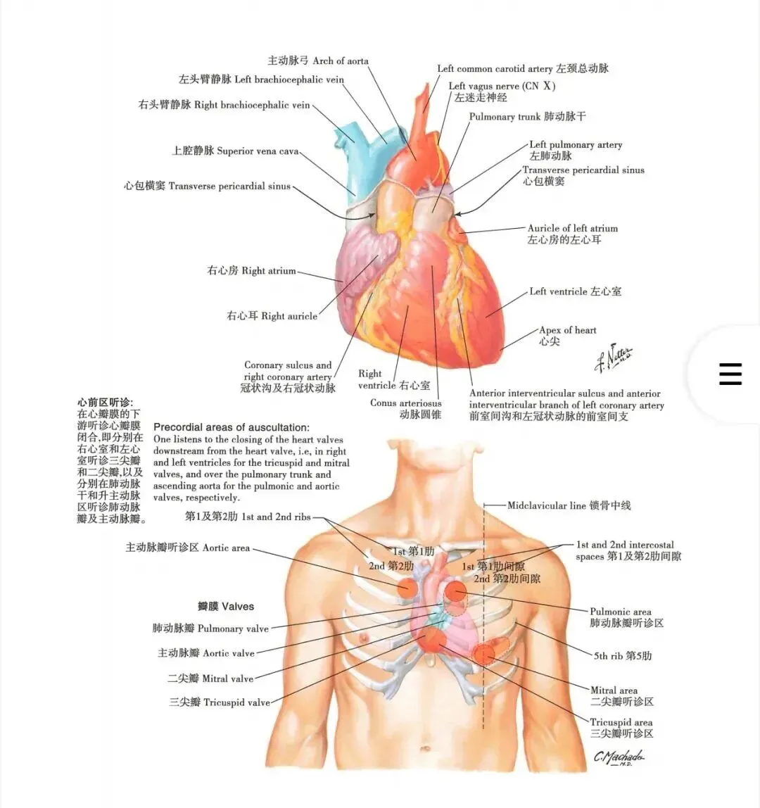 这条肌筋膜线的走行与中医的手厥阴心包经高度吻合。心包经起于胸中,出属心包络,向下穿过膈肌,联络上、中、下三焦(即胸腔、腹腔、盆腔的内脏筋膜)。