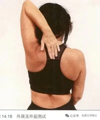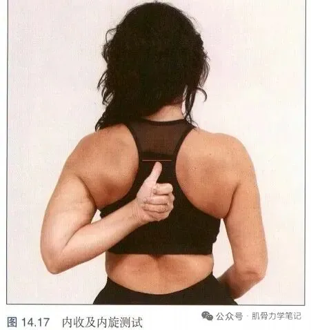 3. 动作测试: 抗阻前臂旋前、抗阻肩内旋、摸背试验(肩内旋+后伸)等,
