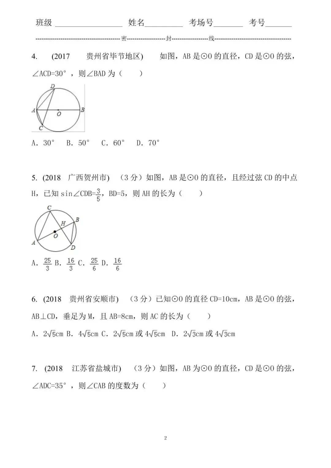 中考真题精选