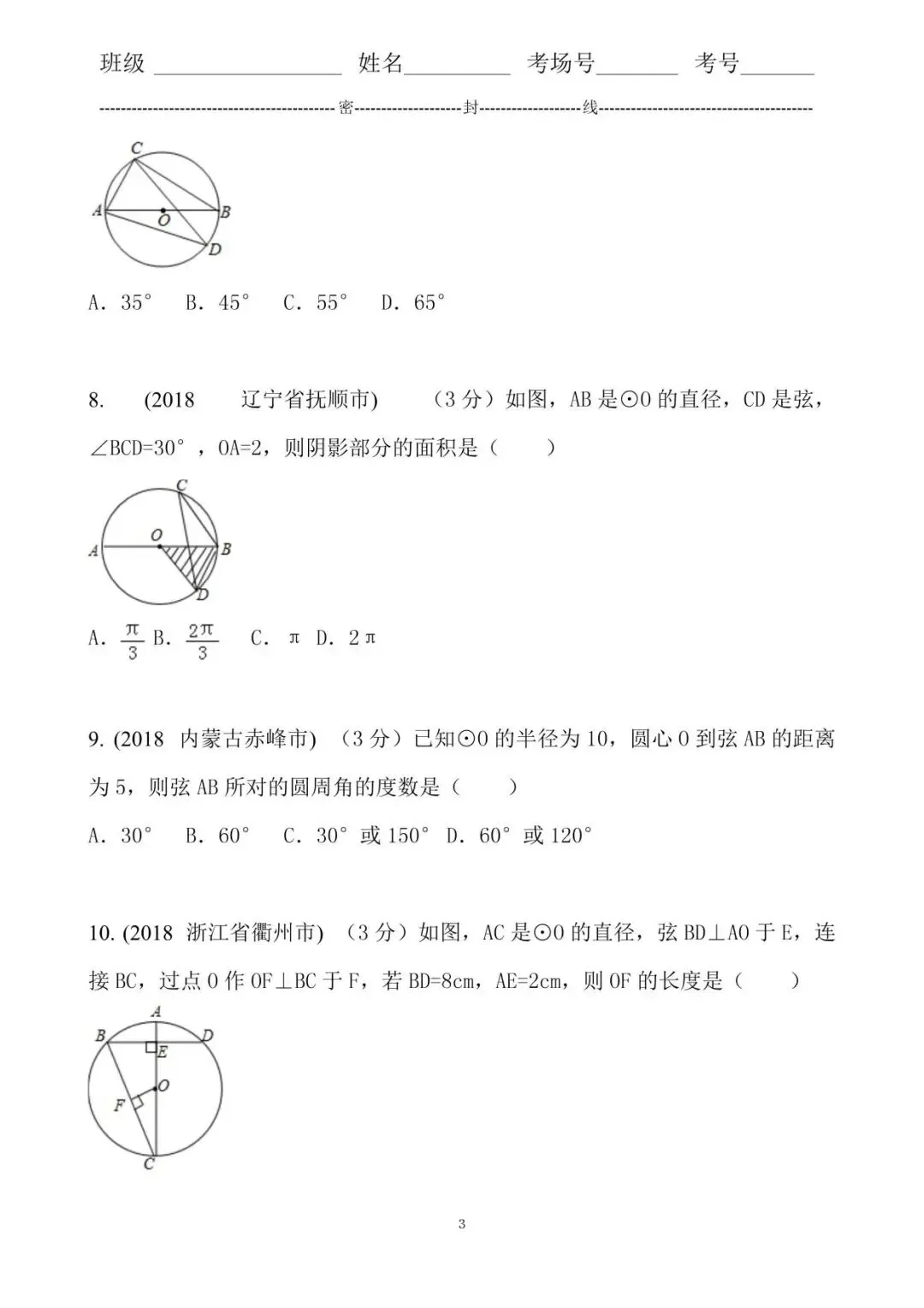 8. 分析根据圆周角定理可以求得∠BOD的度数,然后根据扇形面积公式即可解答本题.