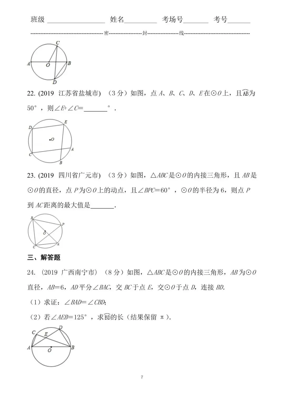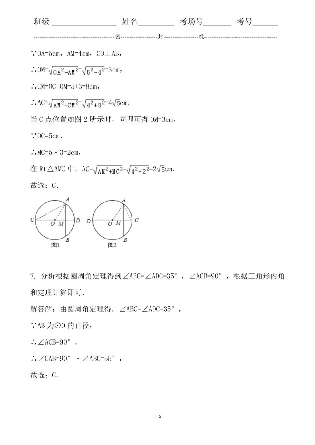 7. 分析根据圆周角定理得到∠ABC=∠ADC=35°,∠ACB=90°,根据三角形内角和定理计算即可.
