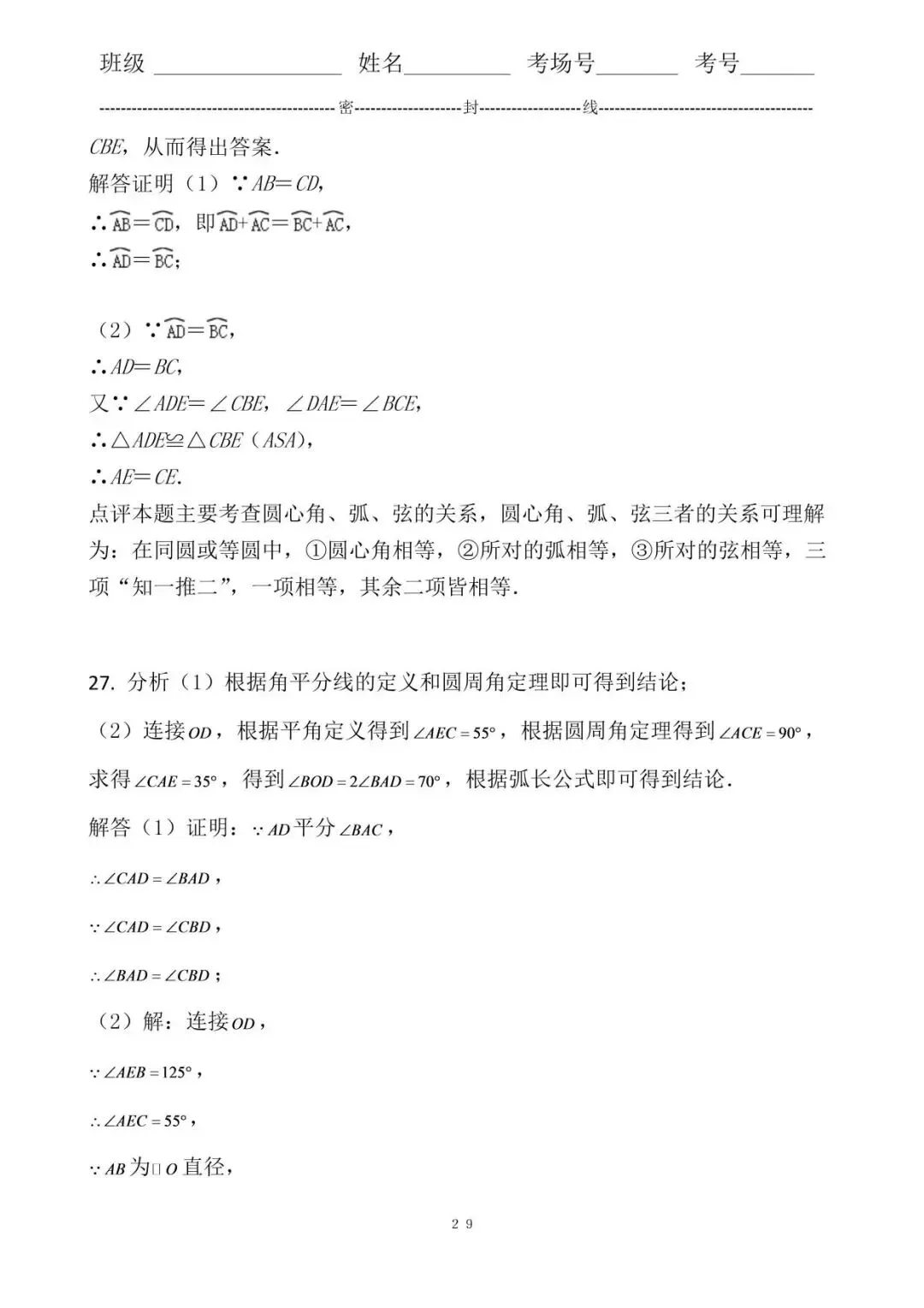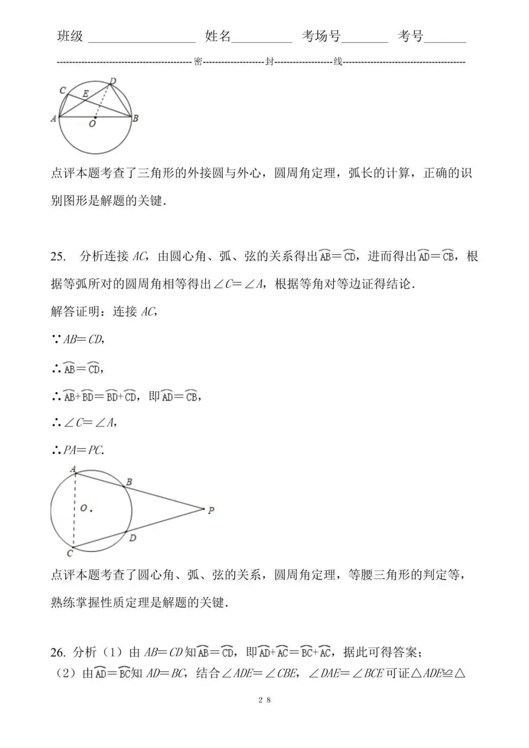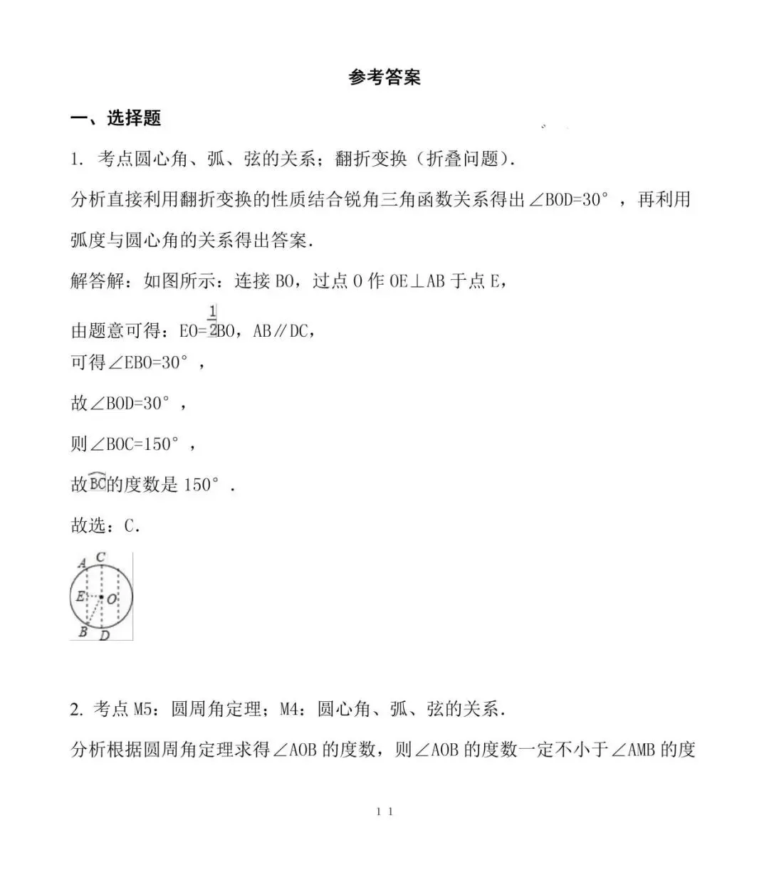2. 考点M5:圆周角定理;M4:圆心角、弧、弦的关系.