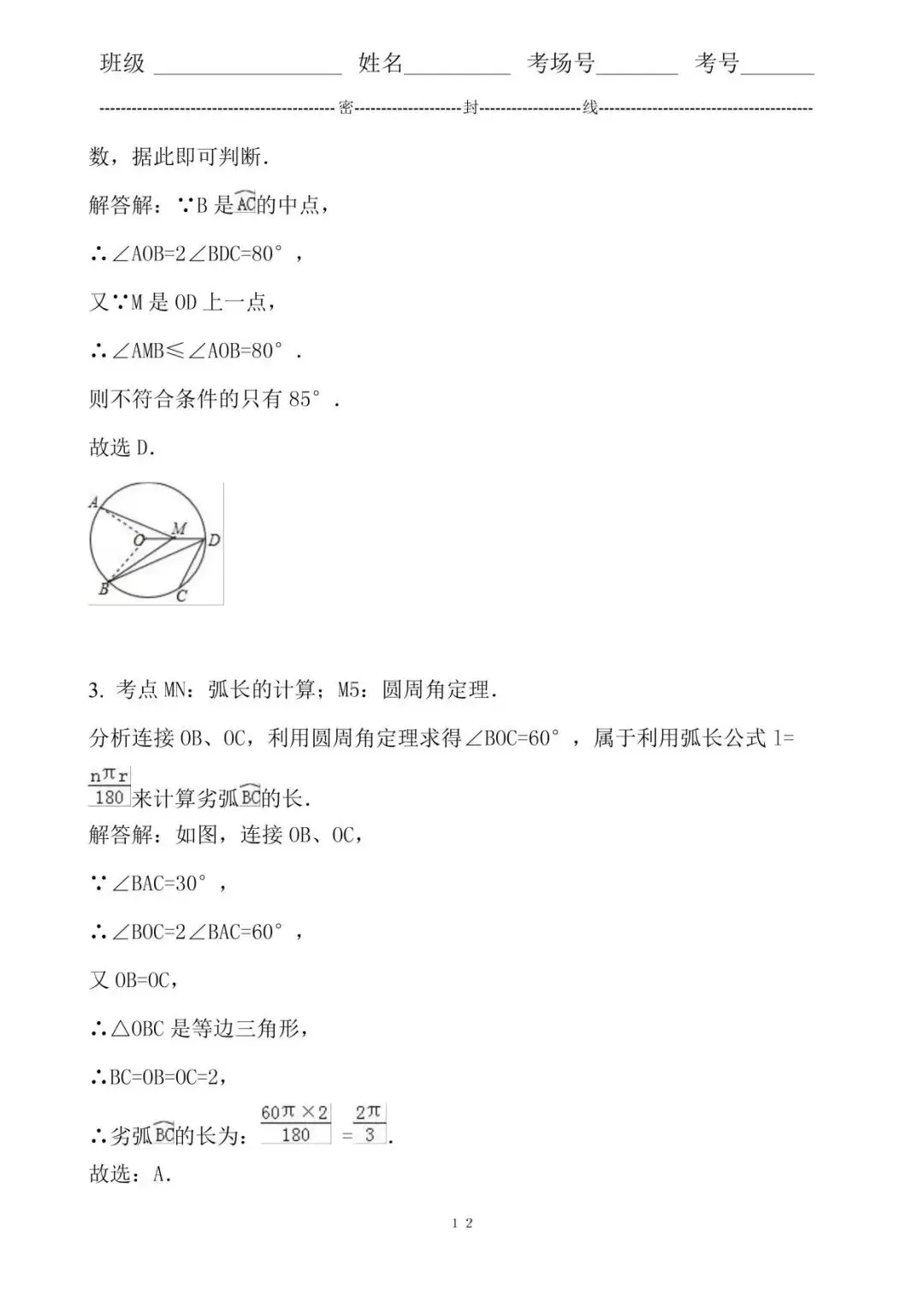 3. 考点MN:弧长的计算;M5:圆周角定理.