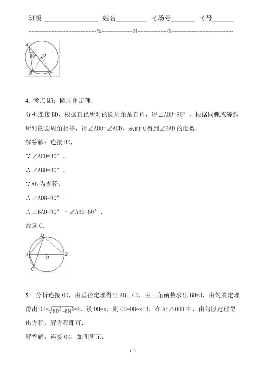 4. 考点M5:圆周角定理.