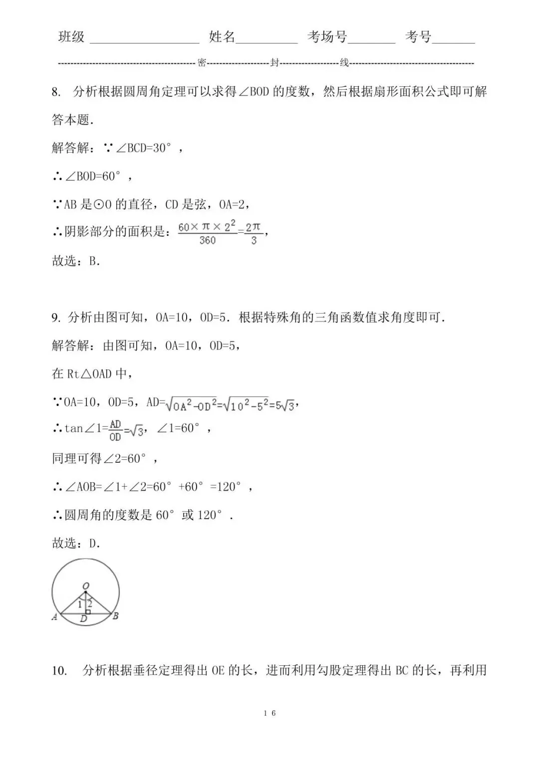 9. 分析由图可知,OA=10,OD=5.根据特殊角的三角函数值求角度即可.