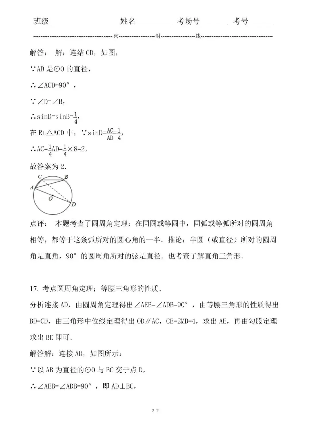 17. 考点圆周角定理;等腰三角形的性质.