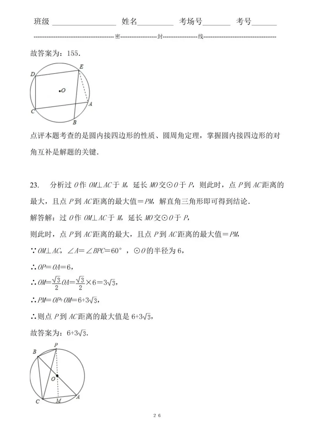 23.分析过O作OM⊥AC于M,延长MO交⊙O于P,则此时,点P到AC距离的最大,且点P到AC距离的最大值=PM,解直角三角形即可得到结论.