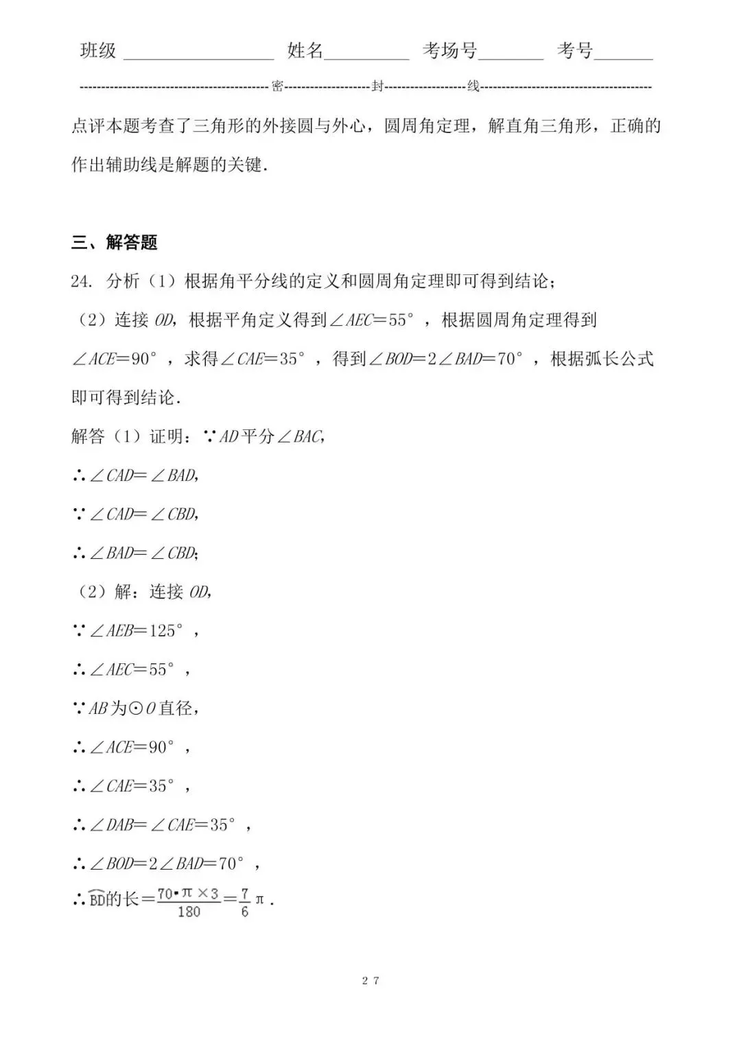27. 分析(1)根据角平分线的定义和圆周角定理即可得到结论;