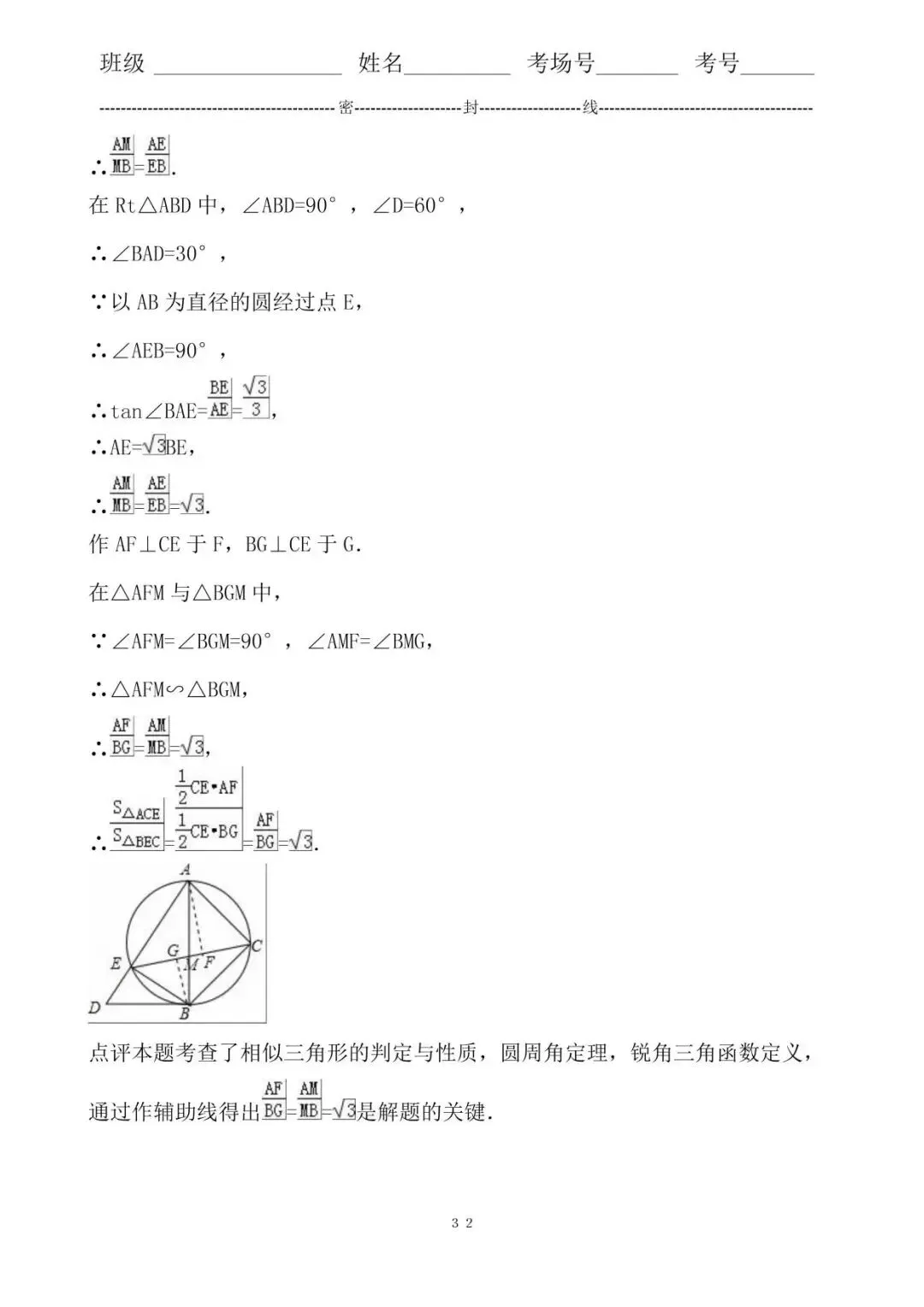 点评本题考查了相似三角形的判定与性质,圆周角定理,锐角三角函数定义,通过作辅助线是解题的关键。