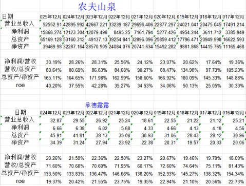 对比农夫山泉,农夫山泉roe更高,这是因为农夫山泉有更高的净利率和杠杆率。