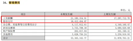 管理费用的增加主要是多了一项股份支付0.18亿,相当于将管理层的工资用股份支付再发了一倍。