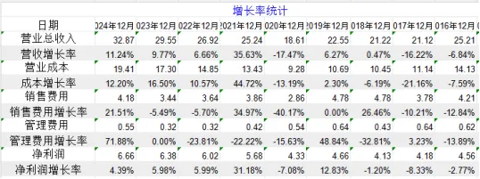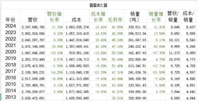 从销量上看,从2014年到2024年10年销量没有增长,营收增长也很少,公司陷入了增长停滞阶段。营收上看2014-2024年10年从27亿增长到31.8亿,增长1.18倍,年华增长率1.8%。