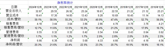营业成本/营收近几年逐年升高,说明毛利率逐年降低。