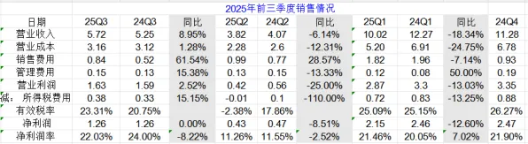 从上面表格看出2025年销售压力更大时,前两个季度营收和净利润都是同比减少,只有Q3是营收增加,但净利润同比没有增加,这是在Q3大幅增加销售费用的情况下获得的成绩,从Q3可以看出,大幅增加销售费用只能是增收不增利,增加的营收也是被销售费用吃掉了。