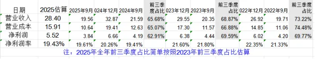 我们假设2025年前三季度占比与2023年前三季度占比相同,可以估算2025年营收28.4亿,同比-13.6%,;净利润5.52亿,同比-17.1%。