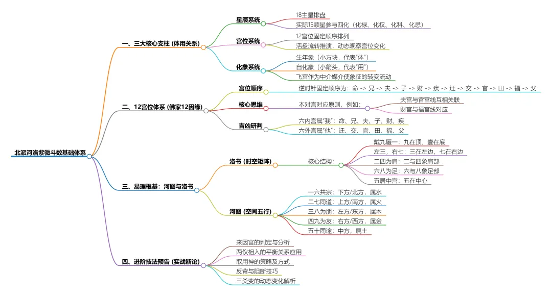 北派紫微斗数之所以精准,是因为它建立在一个极为严密的“三才”架构之上:星辰、宫位、化象。在这个体系中,一切推演都离不开“体”与“用”的辩证关系。