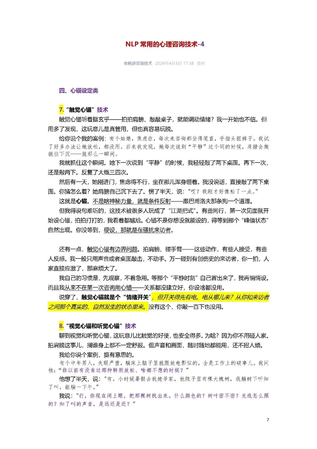 四、心锚设定类:7.“触觉心锚”技术8.“视觉心锚和听觉心锚”技术