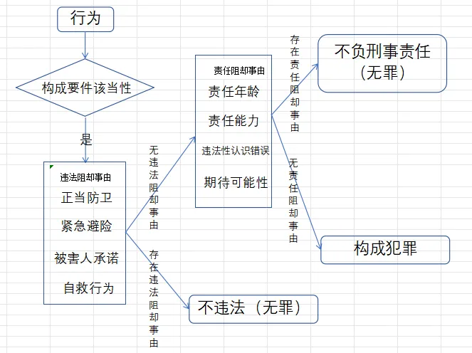 1.违法阻却事由 vs 责任阻却事由:前者否定行为的违法性(行为被正当化);后者肯定行为的违法性,但否定行为人的可谴责性(不追究刑事责任)。