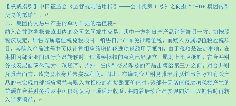 内部交易涉及增值税抵消问题: