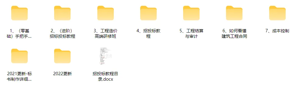 该资料合集招投标学习资料大全,零基础入门到独立完成标书,工程结算与审计,招标开标评标全流程模板等(共计116.15GB)