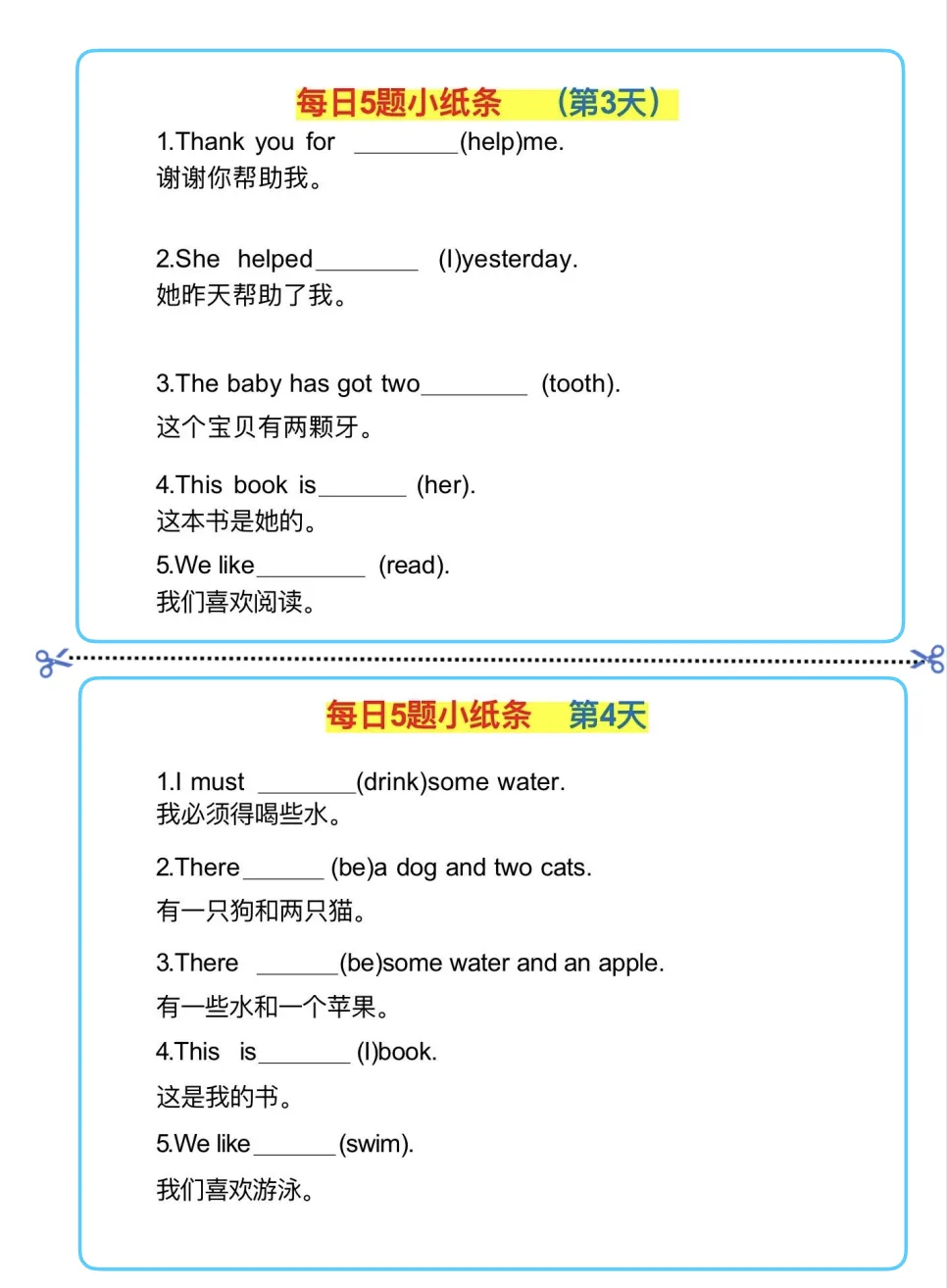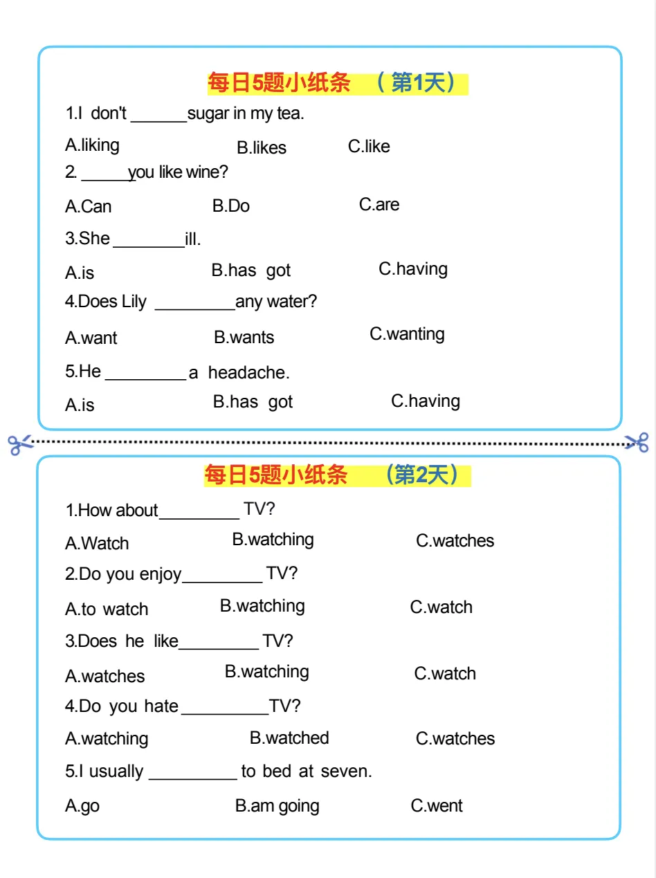 英语学习资料 | 英语语法每日5题小纸条【附讲解视频】(免费分享附下载链接)