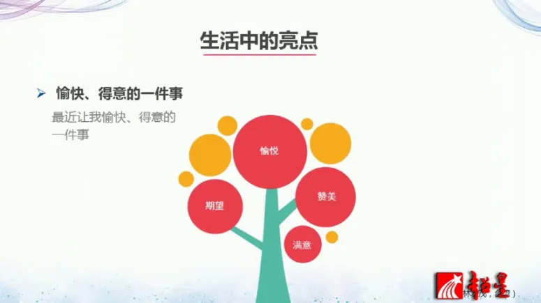 那么过程和结果其实在生涯过程中都挺重要的,但是很多人容易重视结果而忽视过程。那么如何享受教师的职业生涯?那我们下面给大家一一道来。下面我们来做一个开场的热身小活动,我们从4个方面来回顾一下自己,第一个方面呢大家找一下最近的愉快和得意的一件事情,大家想一想最近一周有没有愉快的得意的事情?想一想,第二件事情,就是从出生到现在,让你印象深刻的赞美是谁说的?说些什么?回顾一下。