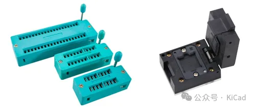 根据我们的需要本次我们主要围绕DIP14、DIP16、DIP20、DIP24、DIP28、DIP32、DIP40、SOP8、SOP14、TSSOP20、QFP64等Socket的PCB封装来进行概述,以上的座子实物如图4-6所示。