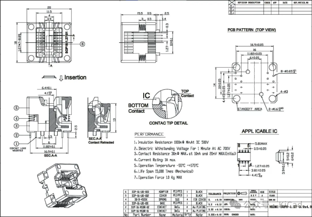 简而言之,外部结构对内需要固定引脚,对外需要固定整个测试座,同时还需要符合整个芯片测试的实际要求。材料部分:测试插座的材料需要符合实际的芯片测试要求。例如做老化测试,测试要求是适用于高低温的测试环境,那么对应的材料需要优先满足这些要求;再比如功能测试,需要对频率、电流、功率等电性能方面有一定要求,那么接触介质的参数也是需要优于需求,以满足测试的正常进行。因此测试插座又被称为符合芯片测试要求的精密转接头。