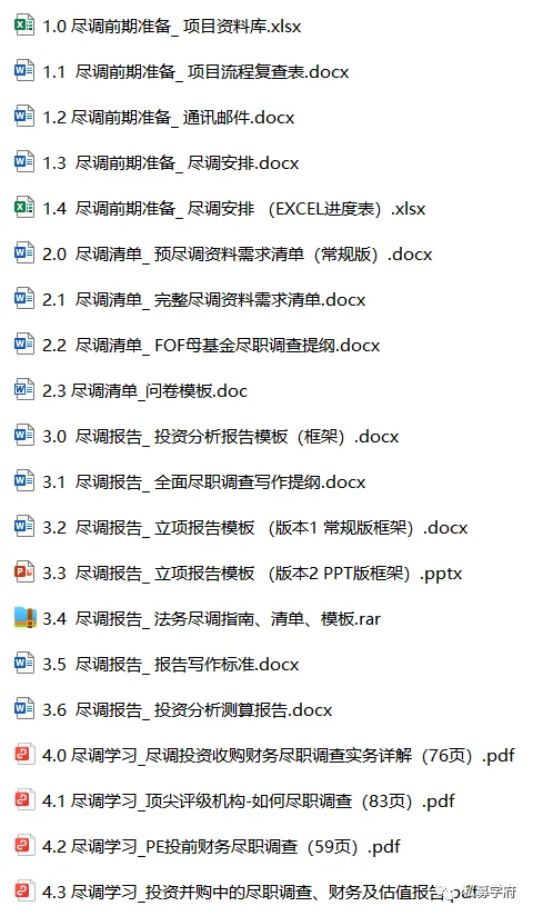本期精选尽职调查实操资料合集,包括尽调资料需求清单、尽职调查写作提纲、立项报告模板、尽调学习资料等,以供读者参考。