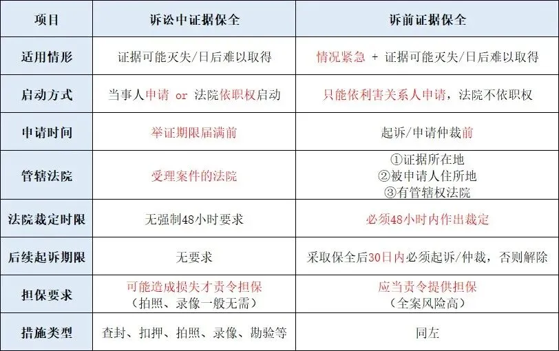 一、诉讼中证据保全 vs 诉前证据保全