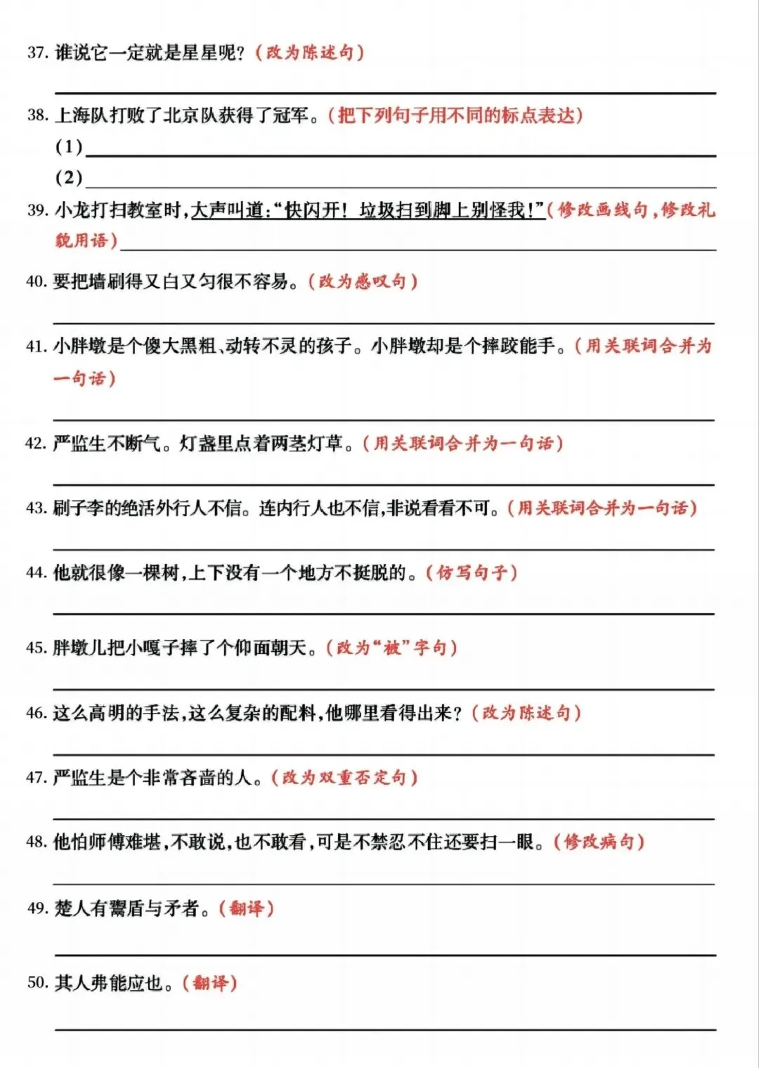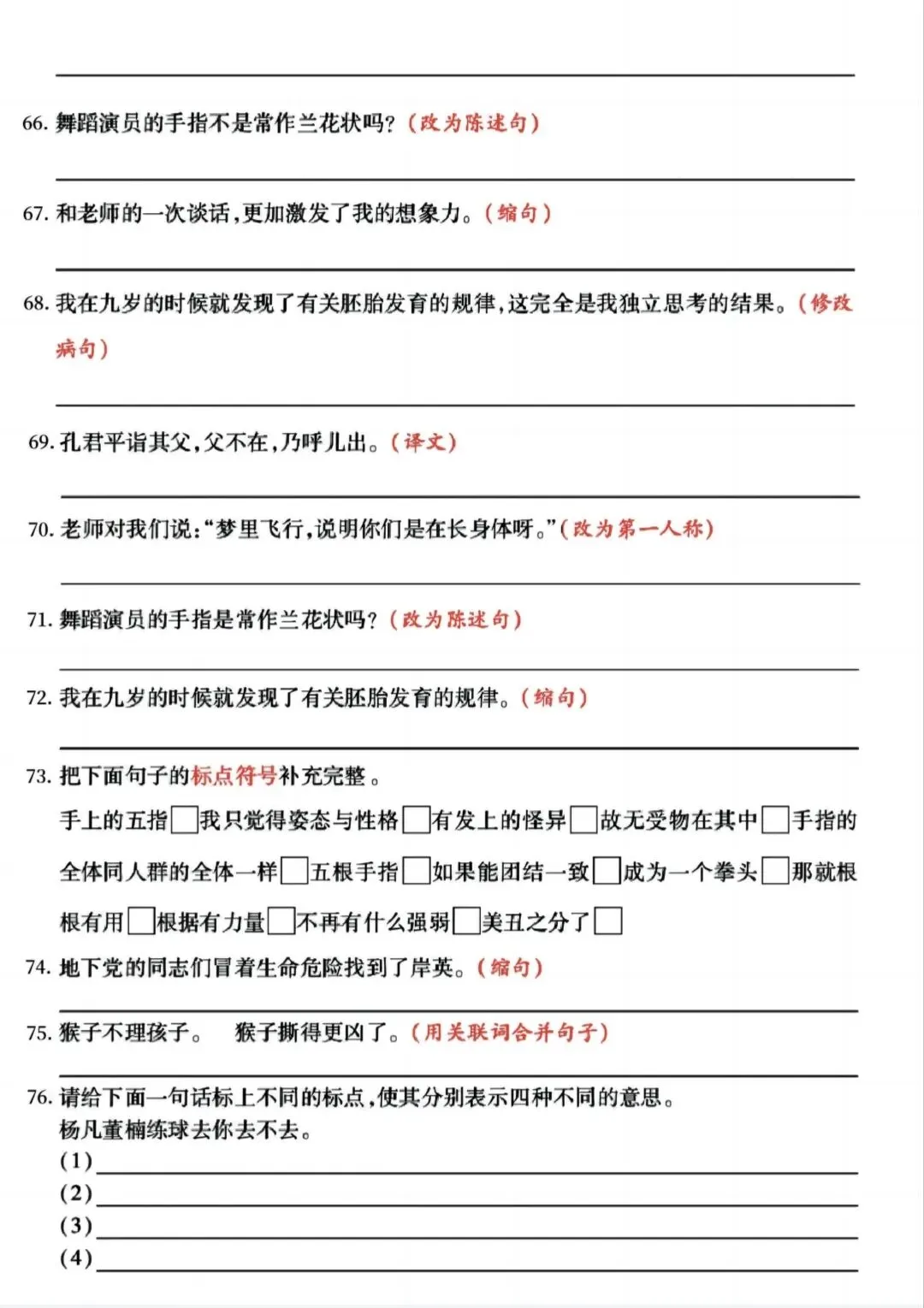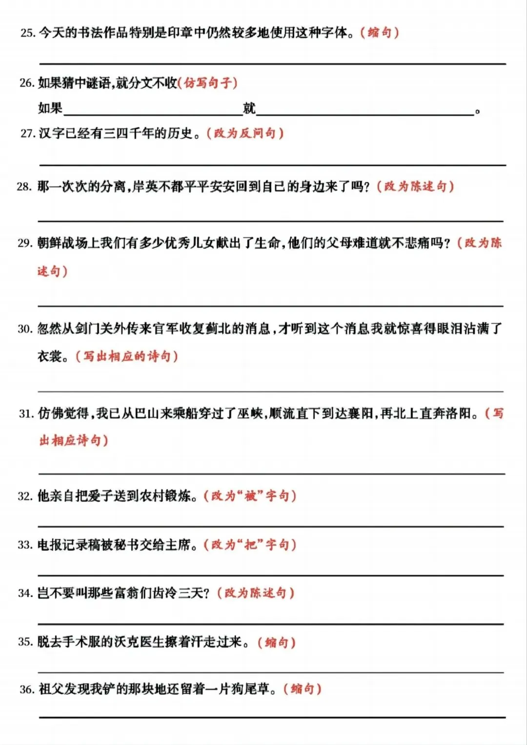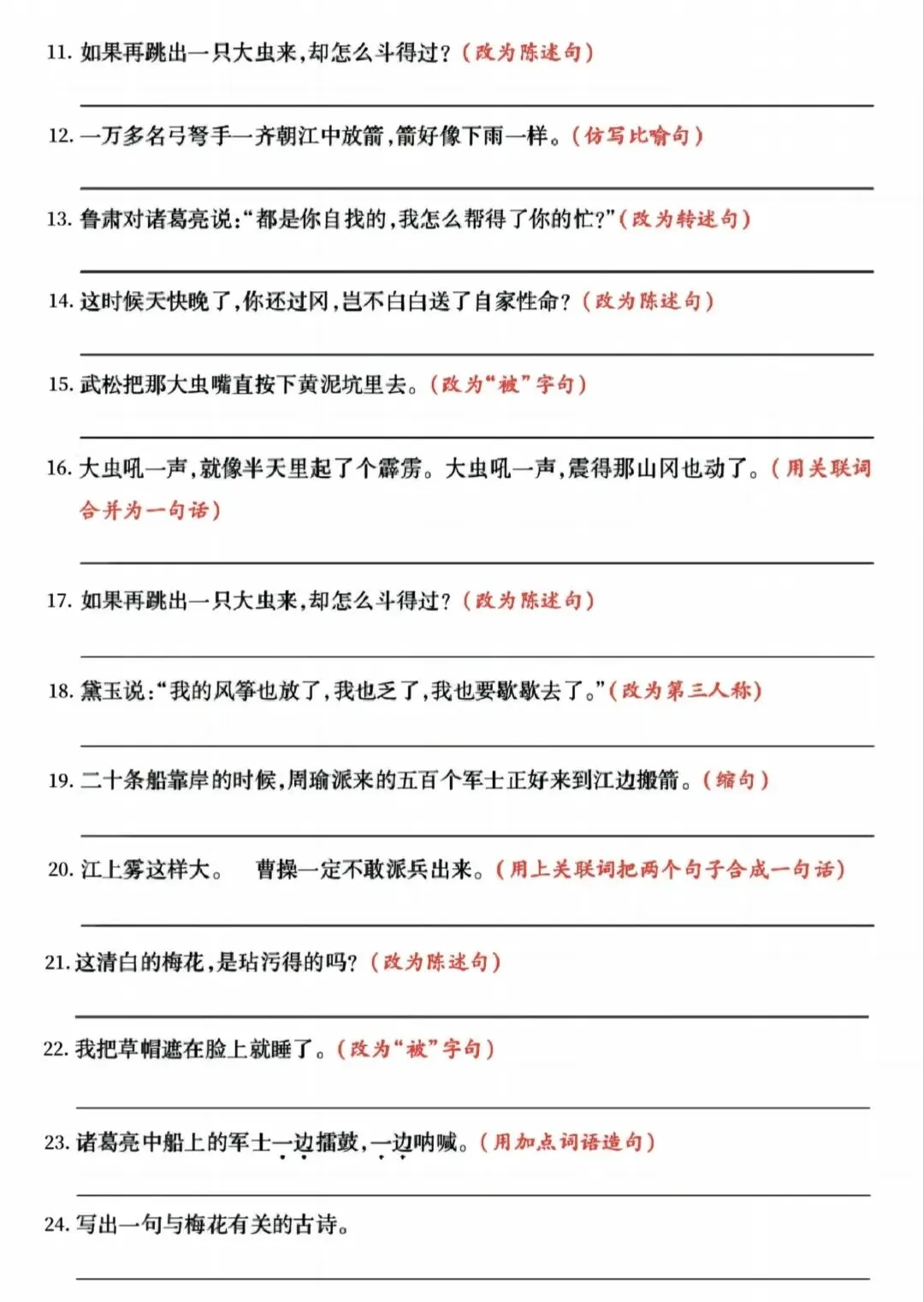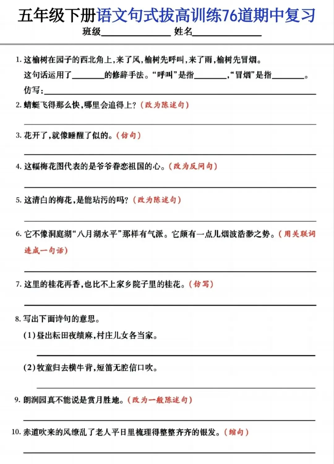 >【学习资料分享】五年级下册语文 期中复习(句式拔高训练)