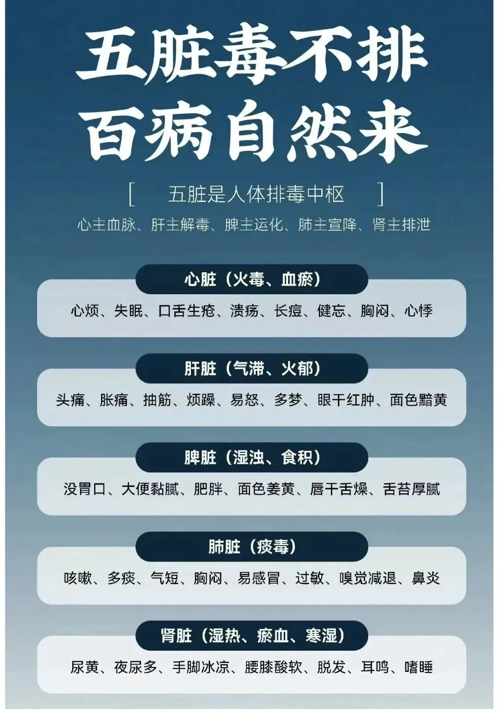 3、“五脏逼毒法” 要按照五行相生的顺序来做, 第一个开始做的脏器要和当时的时辰相对应, 比如胃经运行的时刻就先从脾胃开始,然后肺—金, 肾—水,肝—木,心—火依次进行。