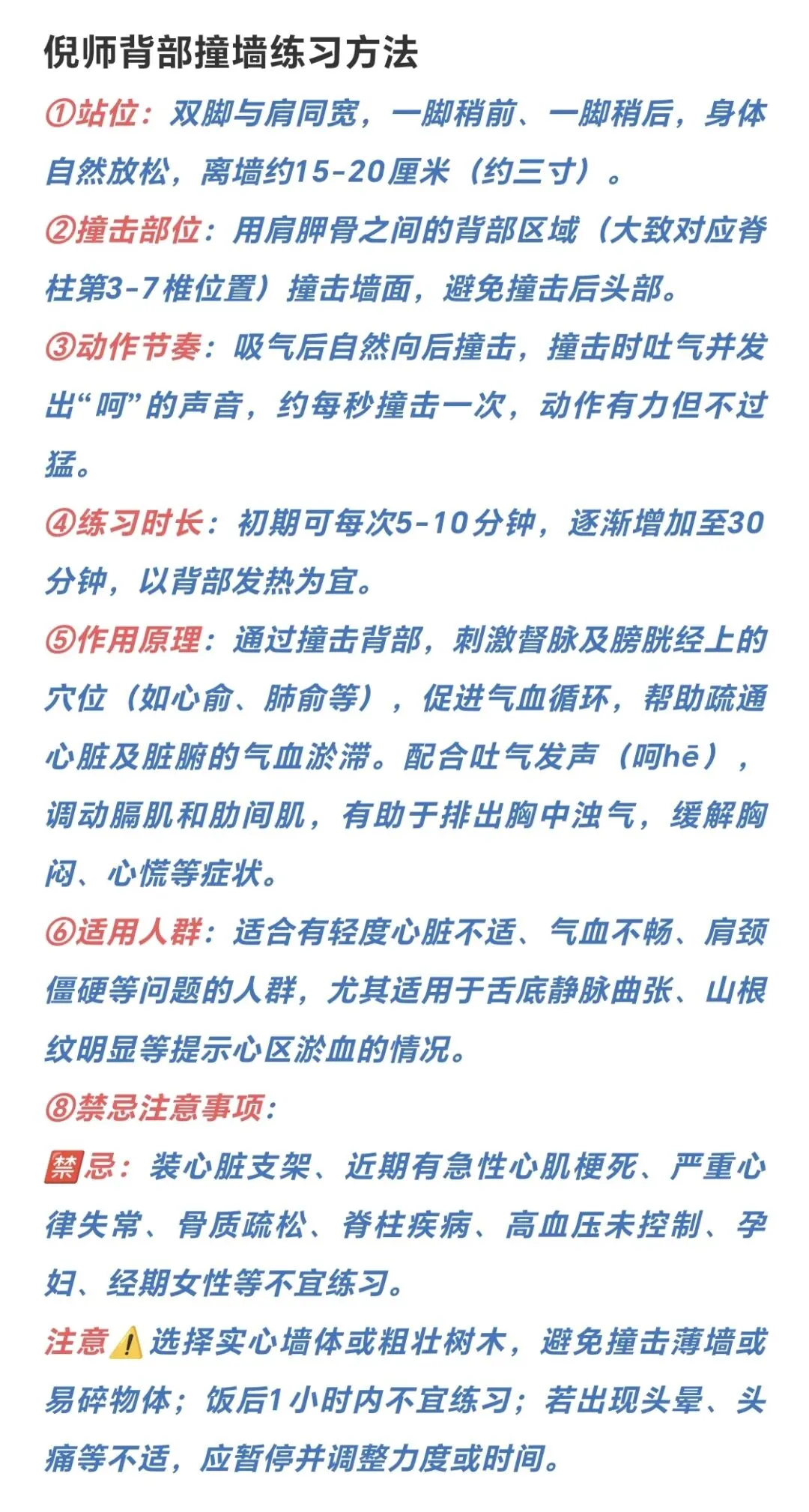 5、心脏逼毒法:后背撞墙,发“呵”声