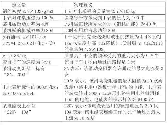 几个定义量的物理意义