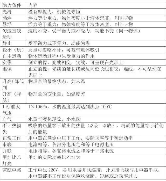 常见的隐含条件及其内容