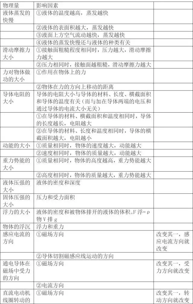 相关物理量及其影响因素