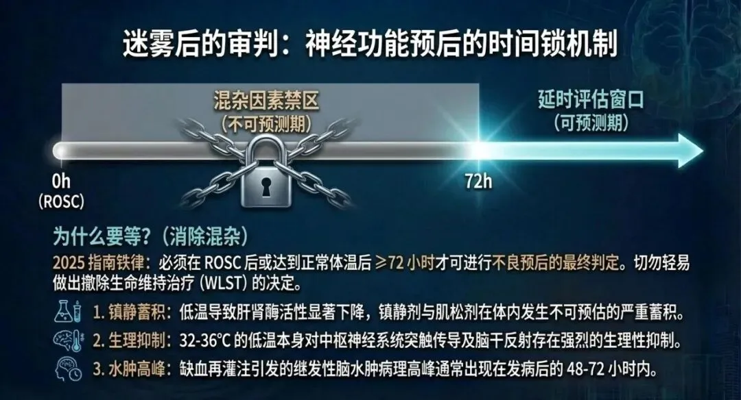 在预测心脏骤停后的神经功能预后时,应采用哪些指标?预测心脏骤停后的神经功能预后时,应采用多模态评估(Multimodal prognostication)策略,绝不能仅依赖任何单一的检查结果,并且必须在排除镇静剂、神经肌肉阻滞剂及体温管理等混杂因素后延时进行(通常在恢复自主循环或达到常温后 ≥72 小时综合评估)。